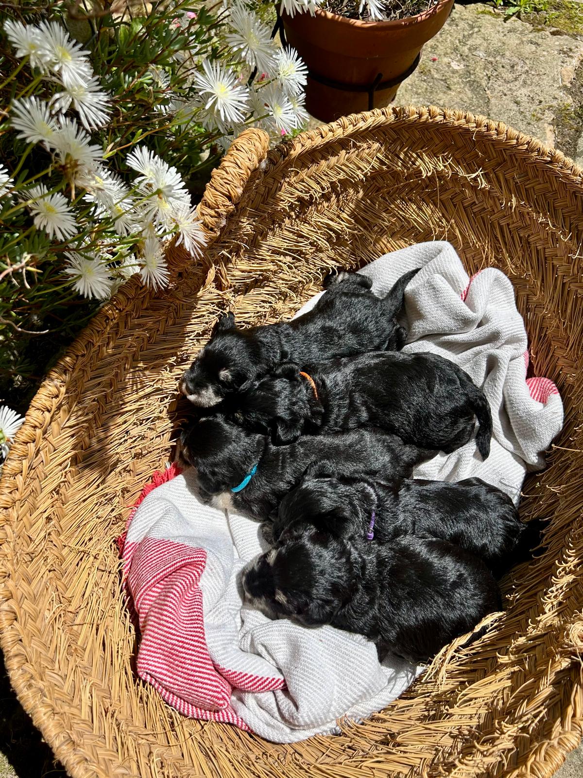 Nacida en Cantabria, Aspen es tranquila, respetuosa inteligente y tiene un instinto maternal asombroso. Es una madre devota, intuitiva y juguetona, con un amor por los campos abiertos y las piedras del rio…pero sin mojarse…..Eso si que no le gusta.