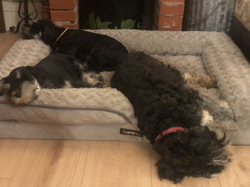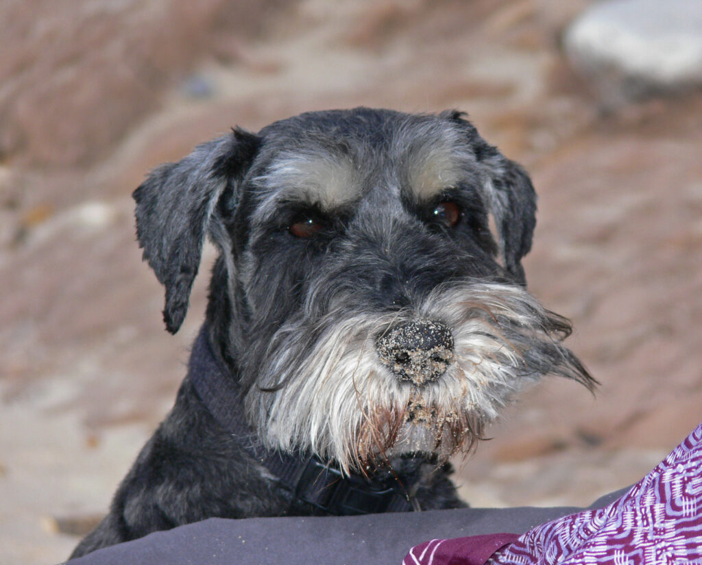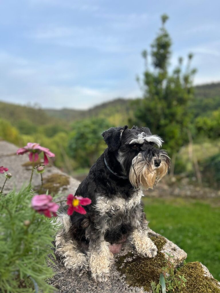 Una noche, mientras cenábamos con amigos, encontró el amor con un Schnauzer negro y plata. Dos meses después, en mi dormitorio, nació un solo cachorro: Gobi, llamado así por el desierto mongol. Tranquilo, sabio y profundamente conectado con nosotros.